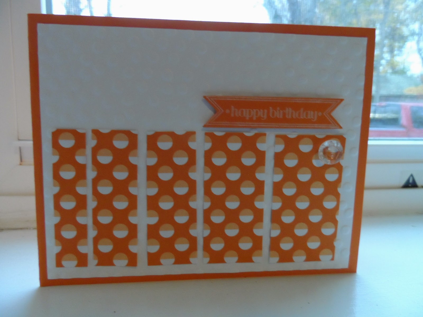 I used base of Crisp Cantaloupe, layers of Hello Honey, Baked Brown Sugar and Lullaby DP. I ran the Brown Sugar through my scallop EF and tied from thick Bakers Twine in Crisp Cantaloupe around the Hello Honey strip. The sentiment is from Petite Pairs. Very simple design that was very easy to work with!